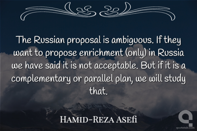 The Russian proposal is ambiguous. If they want to propose enrichment (only) in Russia we have said it is not acceptable. But if it is a complementary or parallel plan, we will study that. Hamid-Reza Asefi
