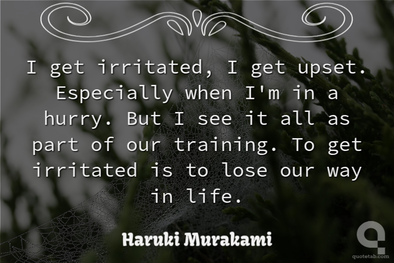 I get irritated, I get upset. Especially when I'm in a hurry. But I see it all as part of our training. To get irritated is to lose our way in life. Haruki Murakami