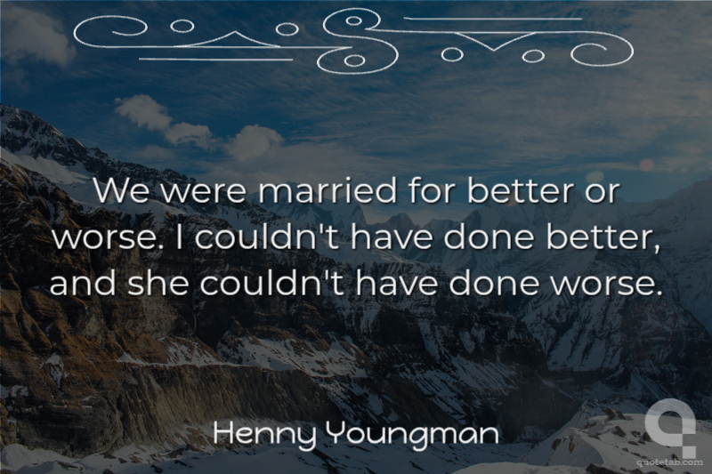 We were married for better or worse. I couldn't have done better, and she couldn't have done worse. Henny Youngman