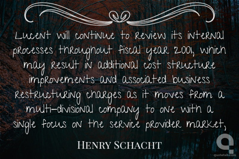 Lucent will continue to review its internal processes throughout fiscal year 2001, which may result in additional cost structure improvements and associated business restructuring charges as it moves from a multi-divisional company to one with a single focus on the service provider market, Henry Schacht