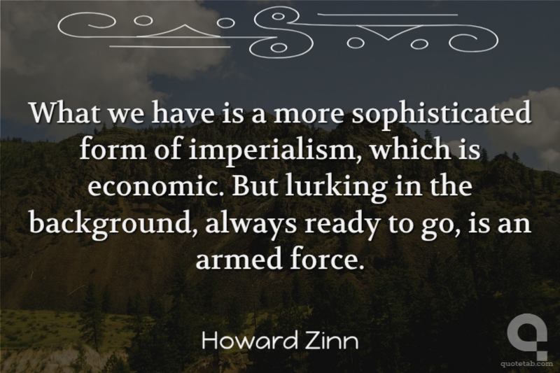 What we have is a more sophisticated form of imperialism, which is economic. But lurking in the background, always ready to go, is an armed force. Howard Zinn