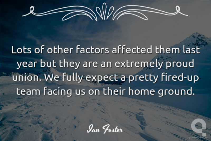 Lots of other factors affected them last year but they are an extremely proud union. We fully expect a pretty fired-up team facing us on their home ground. Ian Foster