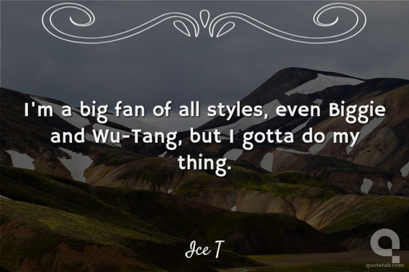 I'm a big fan of all styles, even Biggie and Wu-Tang, but I gotta do my thing. Ice T