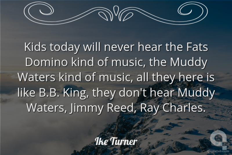 Kids today will never hear the Fats Domino kind of music, the Muddy Waters kind of music, all they here is like B.B. King, they don't hear Muddy Waters, Jimmy Reed, Ray Charles. Ike Turner