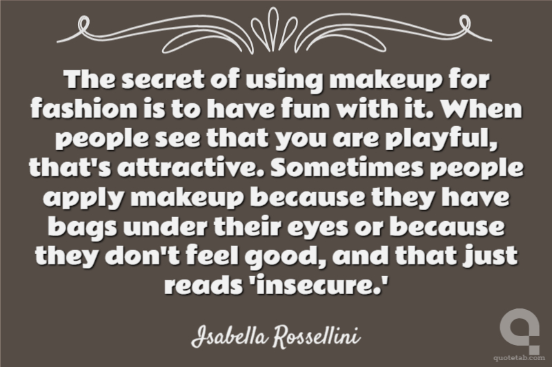 The secret of using makeup for fashion is to have fun with it. When people see that you are playful, that's attractive. Sometimes people apply makeup because they have bags under their eyes or because they don't feel good, and that just reads 'insecure.' Isabella Rossellini