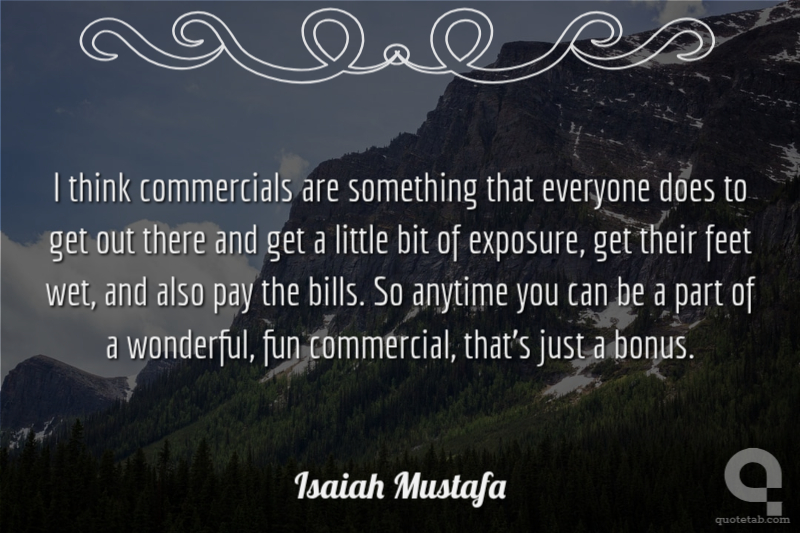 I think commercials are something that everyone does to get out there and get a little bit of exposure, get their feet wet, and also pay the bills. So anytime you can be a part of a wonderful, fun commercial, that's just a bonus. Isaiah Mustafa
