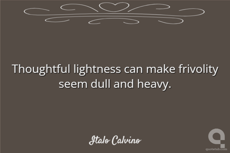 Thoughtful lightness can make frivolity seem dull and heavy. Italo Calvino