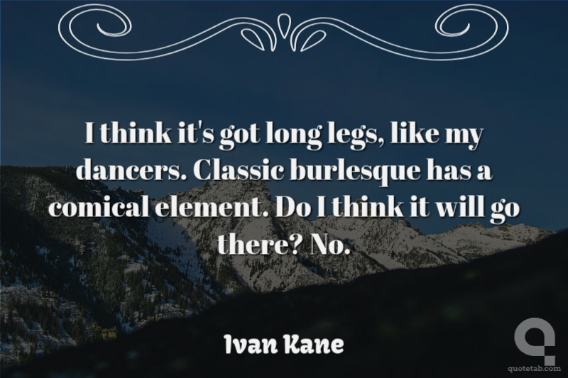I think it's got long legs, like my dancers. Classic burlesque has a comical element. Do I think it will go there? No. Ivan Kane