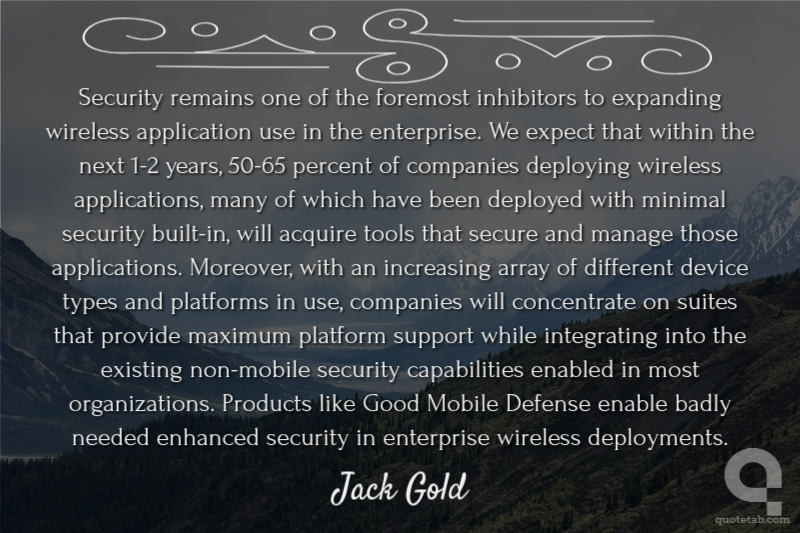 Security remains one of the foremost inhibitors to expanding wireless application use in the enterprise. We expect that within the next 1-2 years, 50-65 percent of companies deploying wireless applications, many of which have been deployed with minimal security built-in, will acquire tools that secure and manage those applications. Moreover, with an increasing array of different device types and platforms in use, companies will concentrate on suites that provide maximum platform support while integrating into the existing non-mobile security capabilities enabled in most organizations. Products like Good Mobile Defense enable badly needed enhanced security in enterprise wireless deployments. Jack Gold