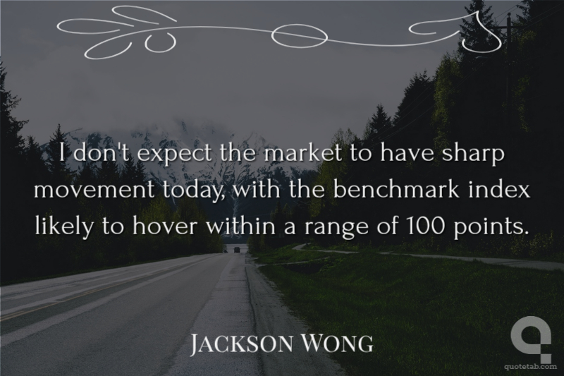 I don't expect the market to have sharp movement today, with the benchmark index likely to hover within a range of 100 points. Jackson Wong