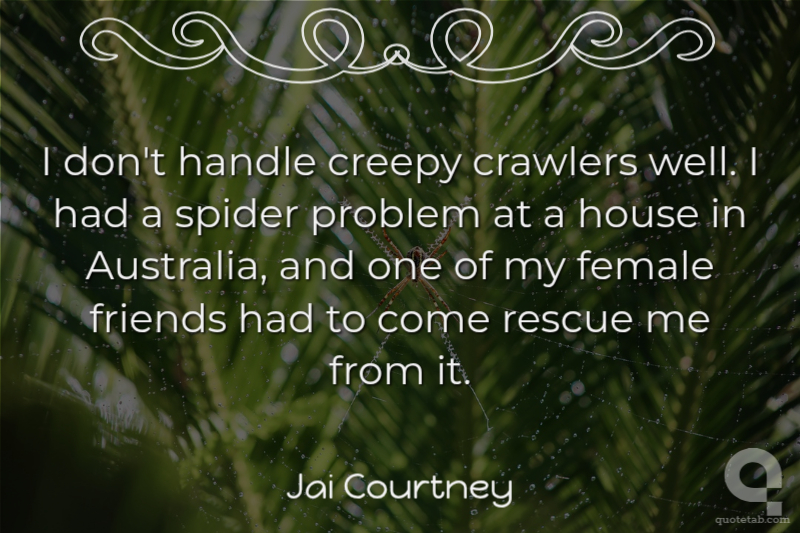I don't handle creepy crawlers well. I had a spider problem at a house in Australia, and one of my female friends had to come rescue me from it. Jai Courtney