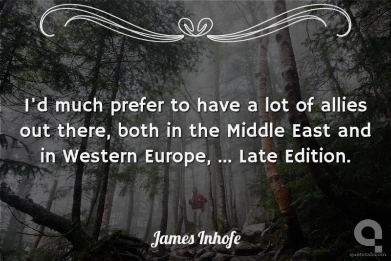 I'd much prefer to have a lot of allies out there, both in the Middle East and in Western Europe, ... Late Edition. James Inhofe