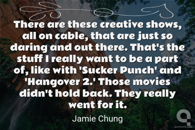 There are these creative shows, all on cable, that are just so daring and out there. That's the stuff I really want to be a part of, like with 'Sucker Punch' and 'Hangover 2.' Those movies didn't hold back. They really went for it. Jamie Chung