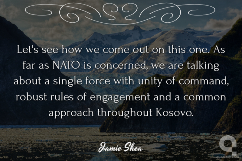 Let's see how we come out on this one. As far as NATO is concerned, we are talking about a single force with unity of command, robust rules of engagement and a common approach throughout Kosovo. Jamie Shea