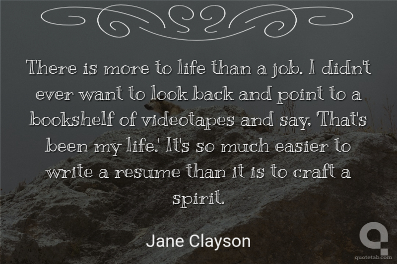 There is more to life than a job. I didn't ever want to look back and point to a bookshelf of videotapes and say, 'That's been my life.' It's so much easier to write a resume than it is to craft a spirit. Jane Clayson