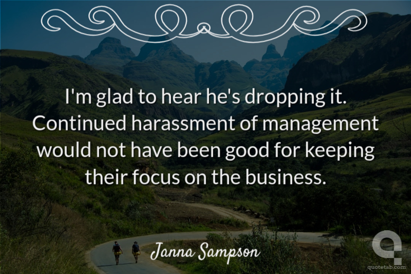 In the day that we are in now with the sensitivity and harassment stuff, we had to have a starting point. Laura Haase