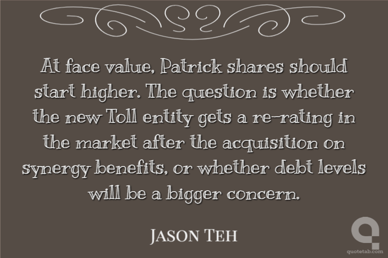 We have no strategic need to be bigger -- none at all. So there is no reason to engage in major M&A activity. Tom McKillop