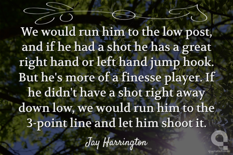 We would run him to the low post, and if he had a shot he has a great right hand or left hand jump hook. But he's more of a finesse player. If he didn't have a shot right away down low, we would run him to the 3-point line and let him shoot it. Jay Harrington