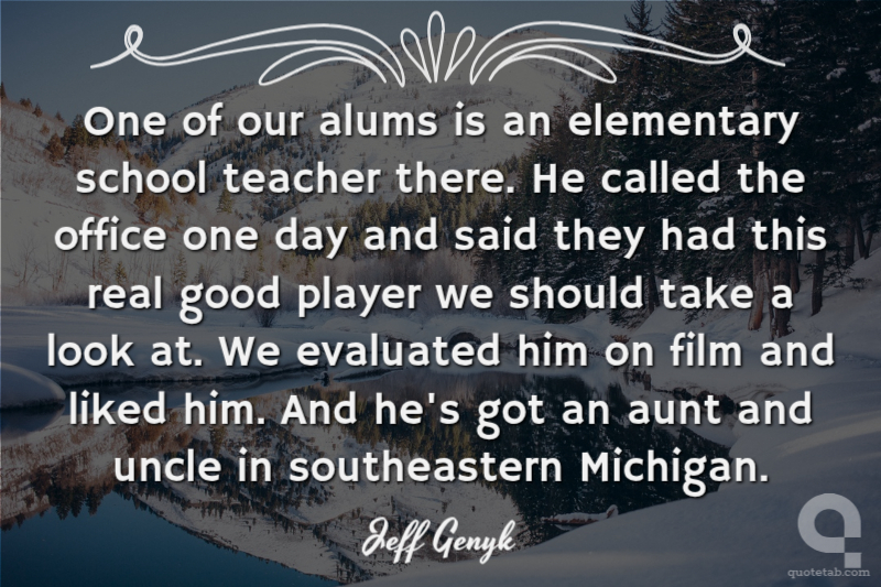 One of our alums is an elementary school teacher there. He called the office one day and said they had this real good player we should take a look at. We evaluated him on film and liked him. And he's got an aunt and uncle in southeastern Michigan. Jeff Genyk