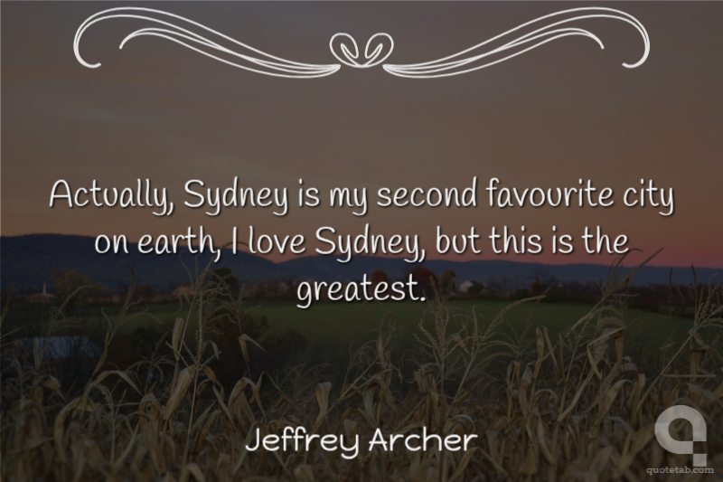 Actually, Sydney is my second favourite city on earth, I love Sydney, but this is the greatest. Jeffrey Archer