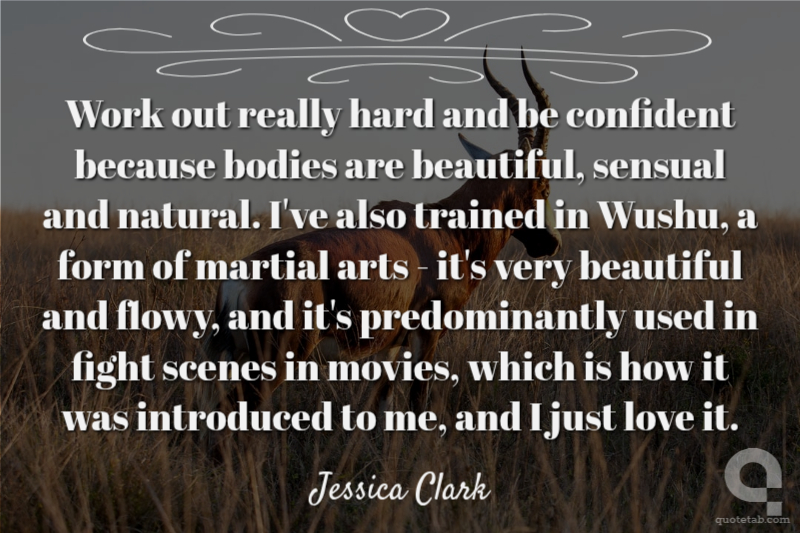 Work out really hard and be confident because bodies are beautiful, sensual and natural. I've also trained in Wushu, a form of martial arts - it's very beautiful and flowy, and it's predominantly used in fight scenes in movies, which is how it was introduced to me, and I just love it. Jessica Clark