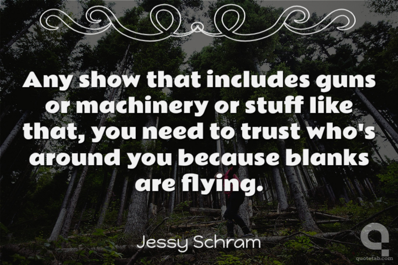 Any show that includes guns or machinery or stuff like that, you need to trust who's around you because blanks are flying. Jessy Schram