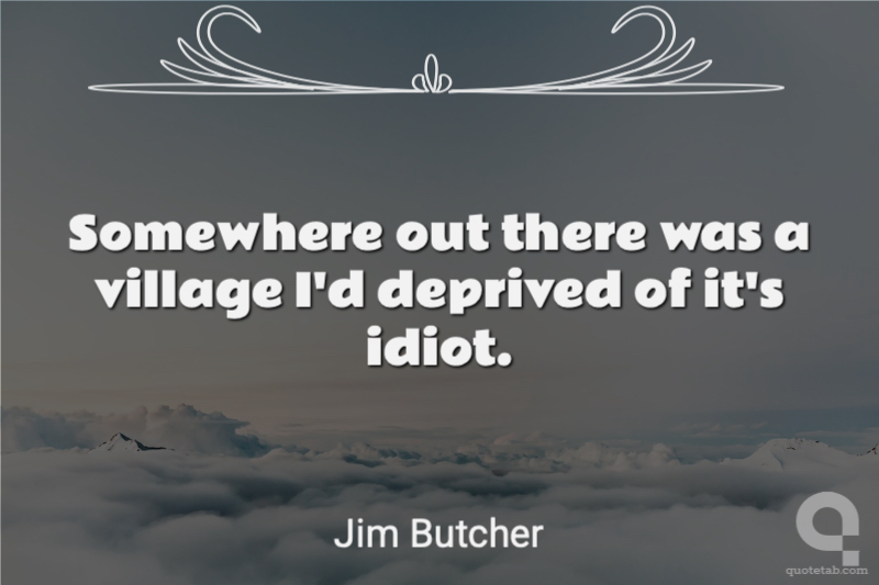 Somewhere out there was a village I'd deprived of it's idiot. Jim Butcher