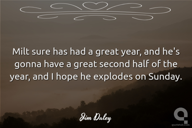 Milt sure has had a great year, and he's gonna have a great second half of the year, and I hope he explodes on Sunday. Jim Daley