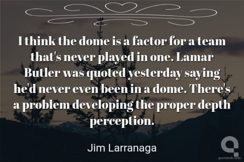 I think the dome is a factor for a team that's never played in one. Lamar Butler was quoted yesterday saying he'd never even been in a dome. There's a problem developing the proper depth perception. Jim Larranaga