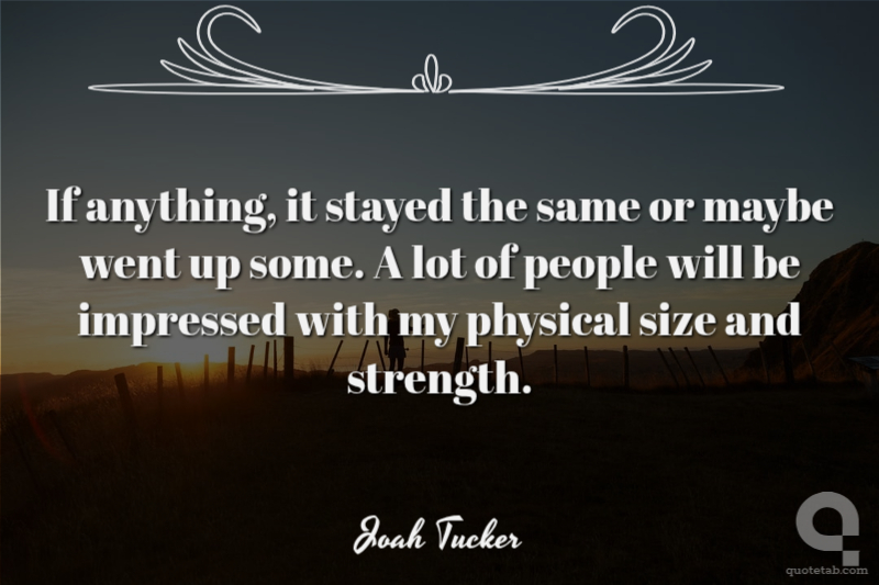 If anything, it stayed the same or maybe went up some. A lot of people will be impressed with my physical size and strength. Joah Tucker