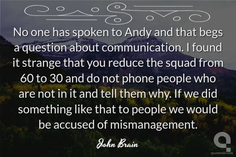 No one has spoken to Andy and that begs a question about communication. I found it strange that you reduce the squad from 60 to 30 and do not phone people who are not in it and tell them why. If we did something like that to people we would be accused of mismanagement. John Brain