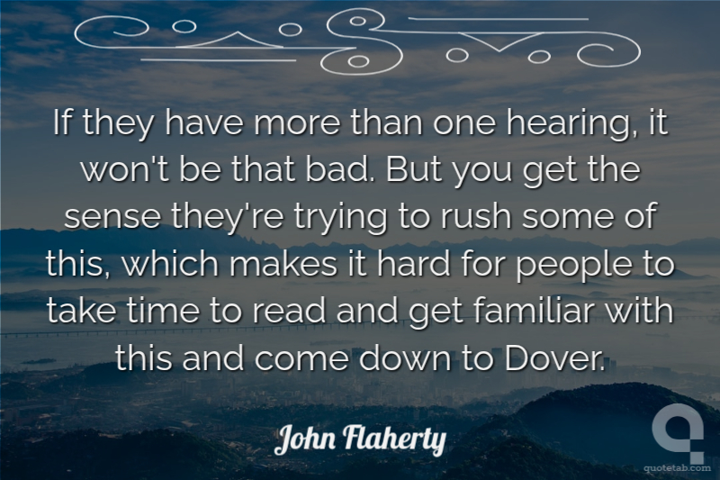 If they have more than one hearing, it won't be that bad. But you get the sense they're trying to rush some of this, which makes it hard for people to take time to read and get familiar with this and come down to Dover. John Flaherty