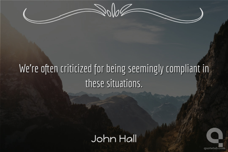 We're often criticized for being seemingly compliant in these situations. John Hall