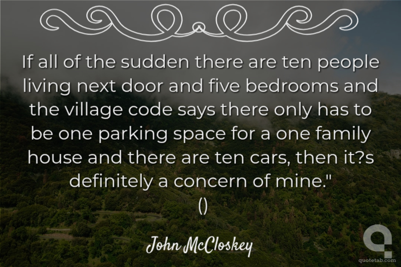 If all of the sudden there are ten people living next door and five bedrooms and the village code says there only has to be one parking space for a one family house and there are ten cars, then it?s definitely a concern of mine." () John McCloskey