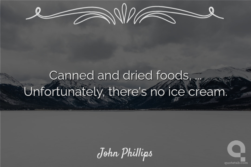 Canned and dried foods, ... Unfortunately, there's no ice cream. John Phillips