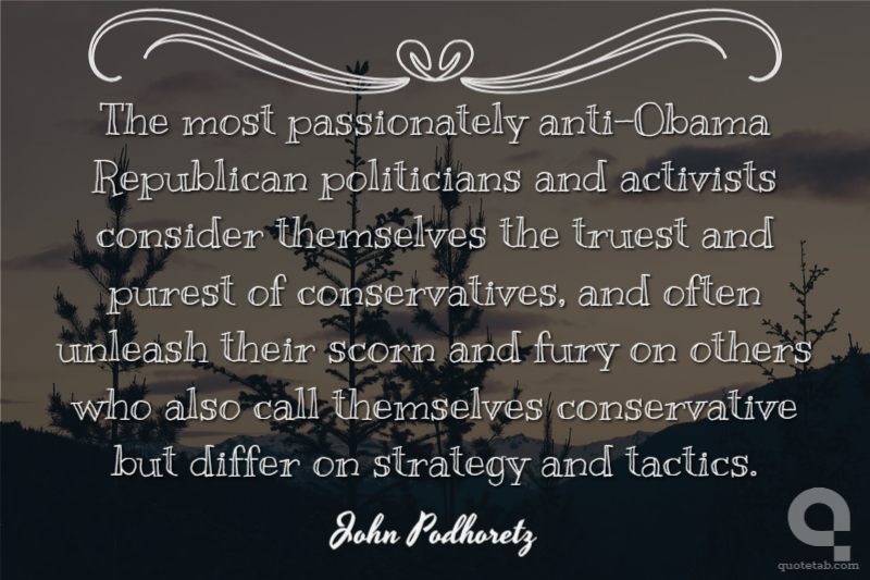 The most passionately anti-Obama Republican politicians and activists consider themselves the truest and purest of conservatives, and often unleash their scorn and fury on others who also call themselves conservative but differ on strategy and tactics. John Podhoretz