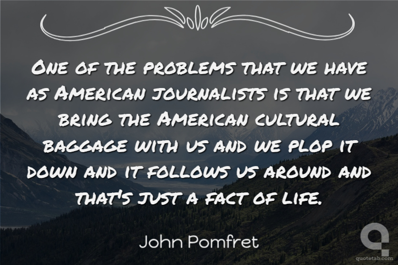 One of the problems that we have as American journalists is that we bring the American cultural baggage with us and we plop it down and it follows us around and that's just a fact of life. John Pomfret