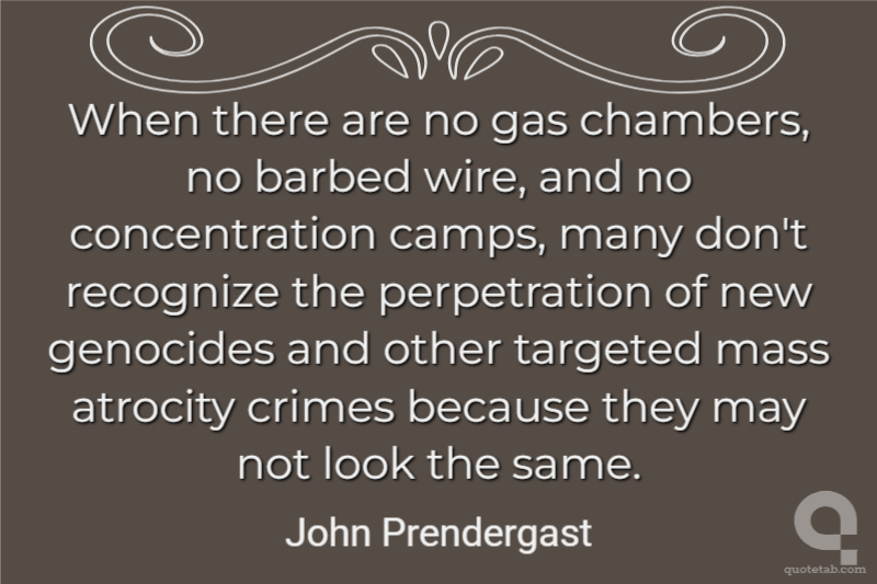 When there are no gas chambers, no barbed wire, and no concentration camps, many don't recognize the perpetration of new genocides and other targeted mass atrocity crimes because they may not look the same. John Prendergast