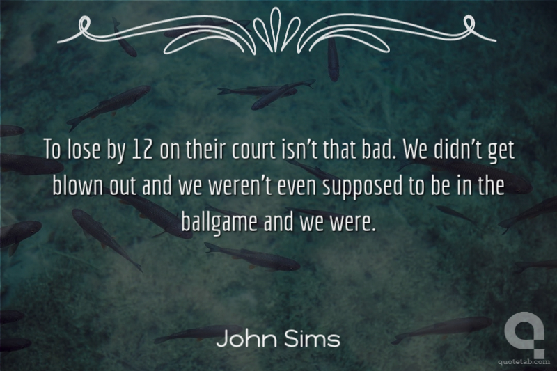 To lose by 12 on their court isn't that bad. We didn't get blown out and we weren't even supposed to be in the ballgame and we were. John Sims