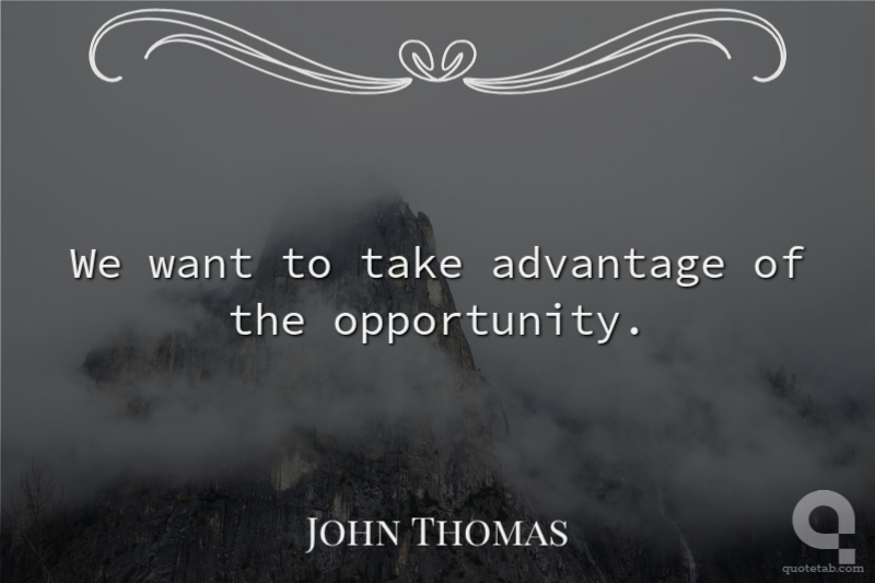 We want to take advantage of the opportunity. John Thomas