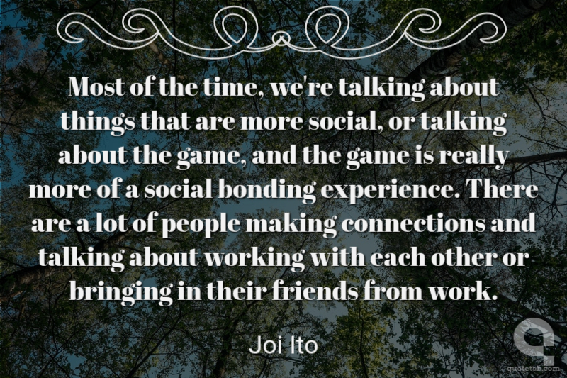 Most of the time, we're talking about things that are more social, or talking about the game, and the game is really more of a social bonding experience. There are a lot of people making connections and talking about working with each other or bringing in their friends from work. Joi Ito