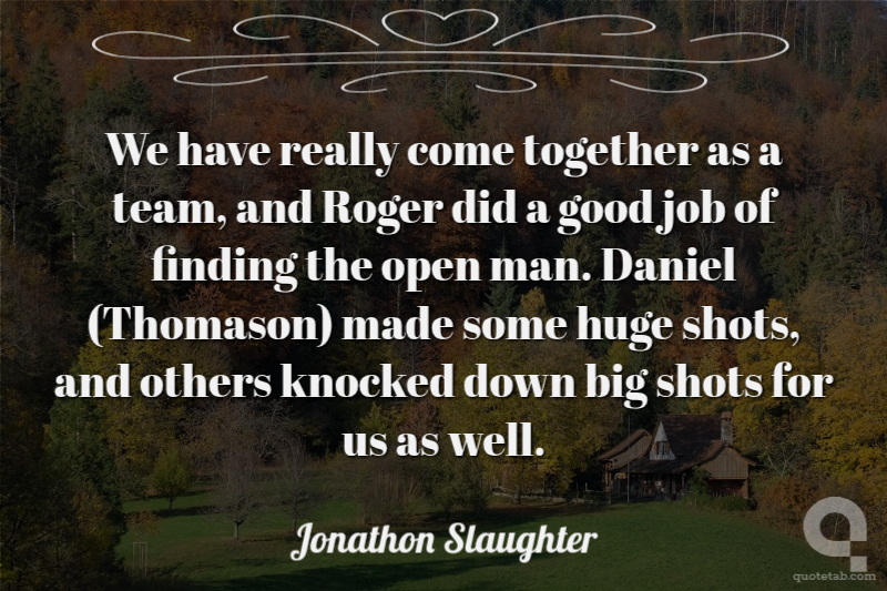 We have really come together as a team, and Roger did a good job of finding the open man. Daniel (Thomason) made some huge shots, and others knocked down big shots for us as well. Jonathon Slaughter