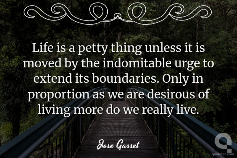 Life is a petty thing unless it is moved by the indomitable urge to extend its boundaries. Only in proportion as we are desirous of living more do we really live. Jose Gasset