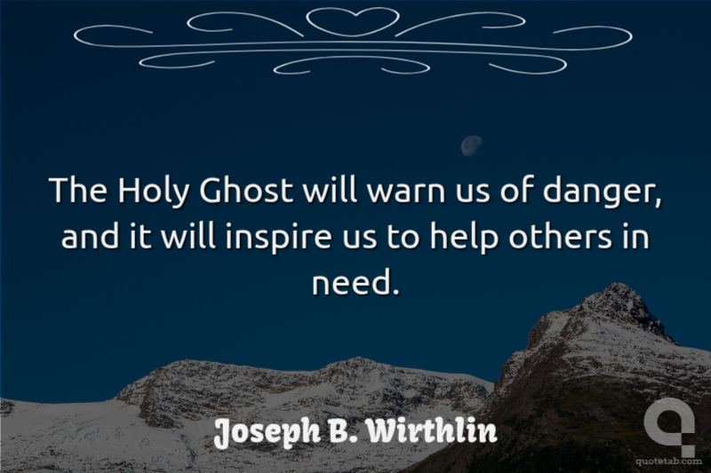 The Holy Ghost will warn us of danger, and it will inspire us to help others in need. Joseph B. Wirthlin