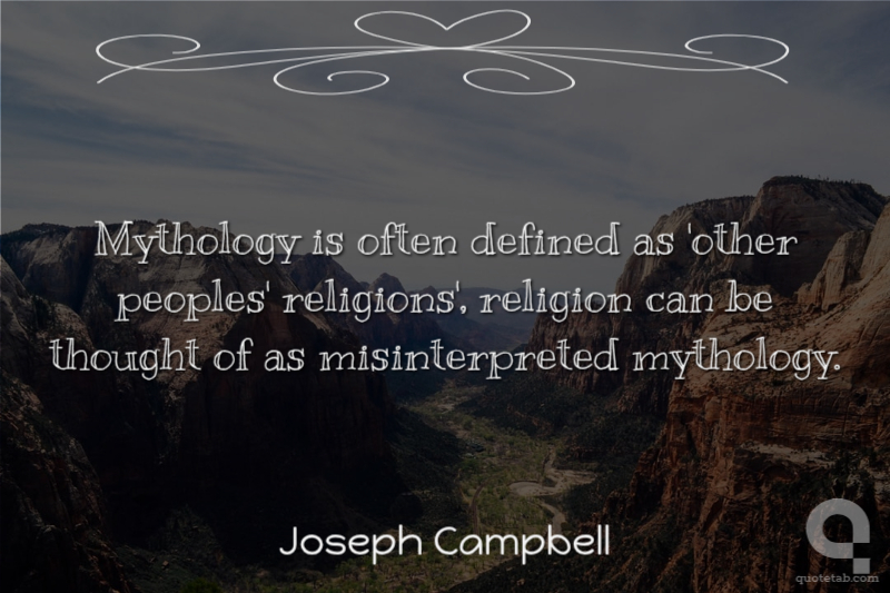 Mythology is often defined as 'other peoples' religions', religion can be thought of as misinterpreted mythology. Joseph Campbell