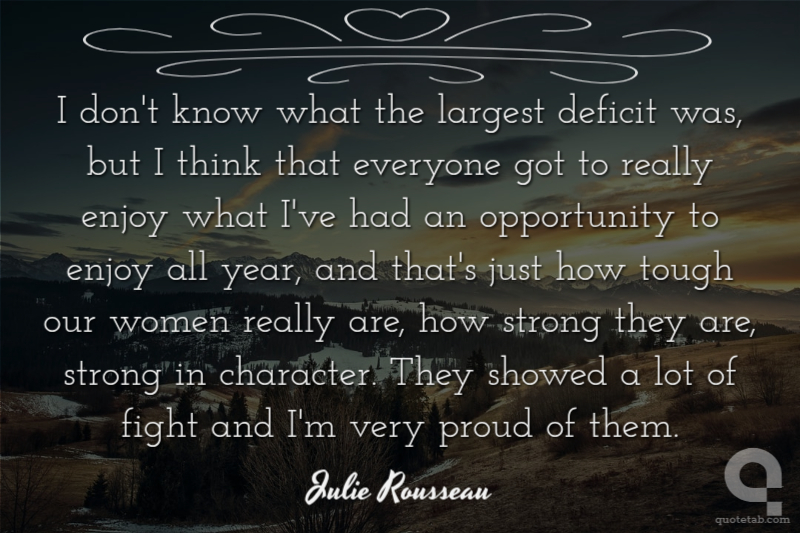 I don't know what the largest deficit was, but I think that everyone got to really enjoy what I've had an opportunity to enjoy all year, and that's just how tough our women really are, how strong they are, strong in character. They showed a lot of fight and I'm very proud of them. Julie Rousseau