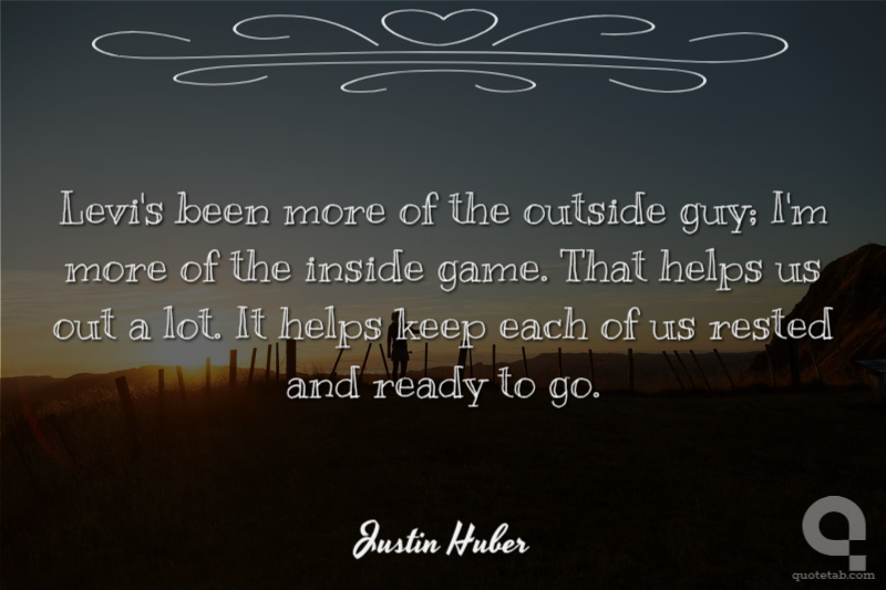Levi's been more of the outside guy; I'm more of the inside game. That helps us out a lot. It helps keep each of us rested and ready to go. Justin Huber