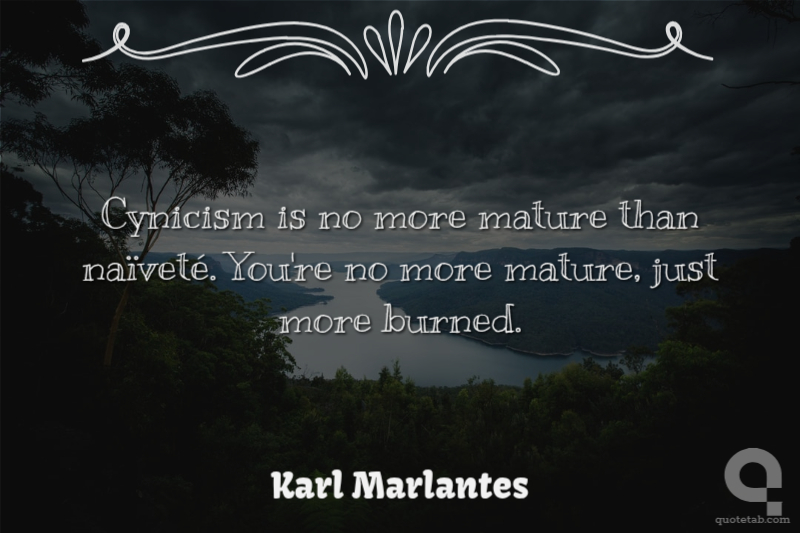 Cynicism is no more mature than naïveté. You're no more mature, just more burned. Karl Marlantes