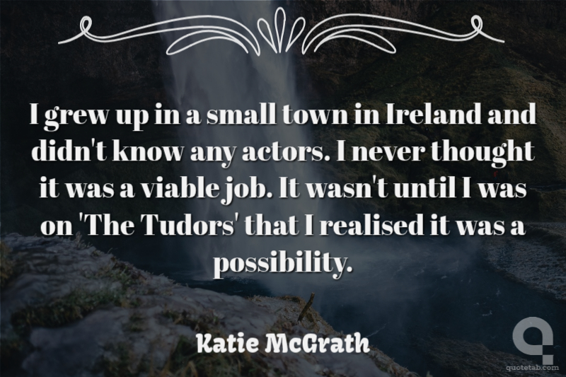 I grew up in a small town in Ireland and didn't know any actors. I never thought it was a viable job. It wasn't until I was on 'The Tudors' that I realised it was a possibility. Katie McGrath