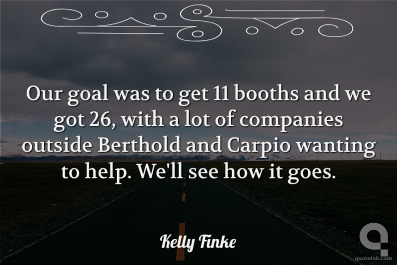 Our goal was to get 11 booths and we got 26, with a lot of companies outside Berthold and Carpio wanting to help. We'll see how it goes. Kelly Finke